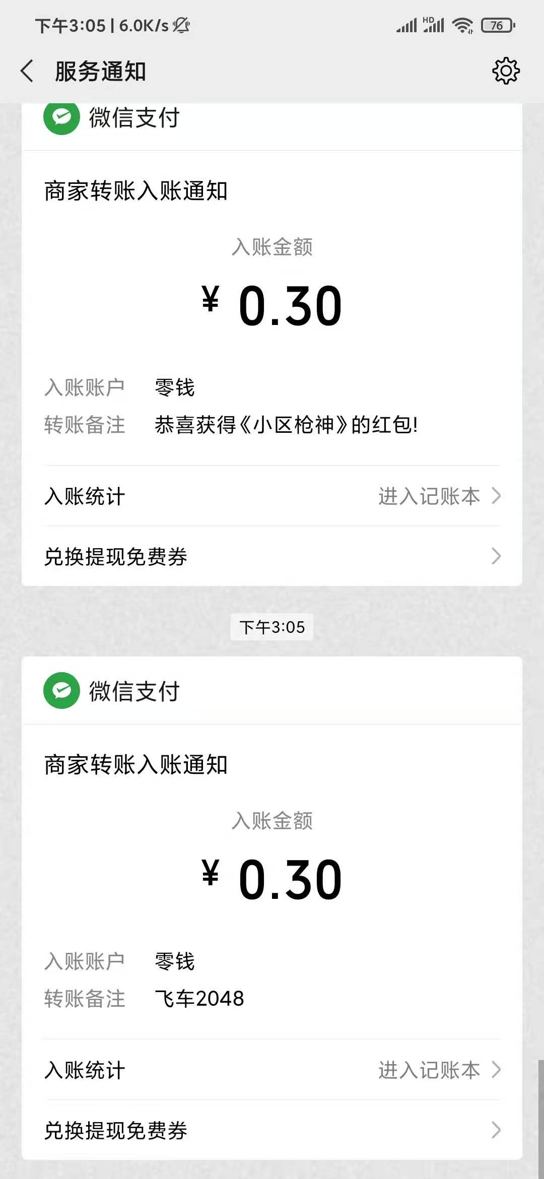 在飞车2048提现页面,我看到提现0.3元,需要600福卷。看一个广告视频,是100福卷。看完六个广告,我提现0.3元,秒到微信零钱。