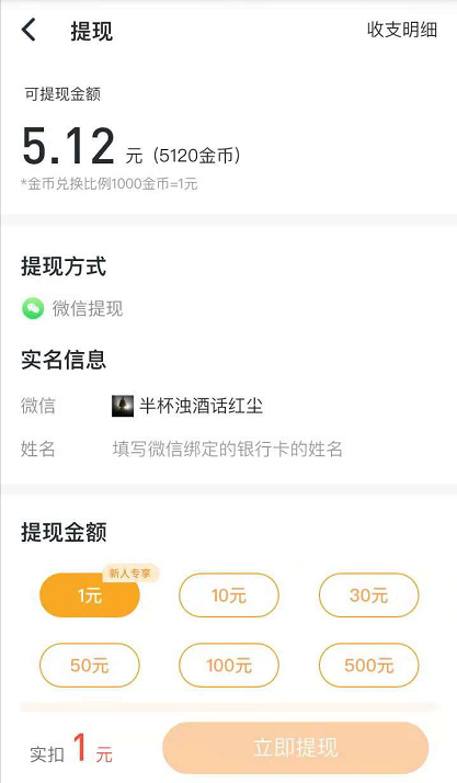 下载完一次应用后就会获得1元体现的资格吧,反正就是能提现了,点击提现就阔以了,然后就1元到账了,羊毛再少也是肉啊,够你坐一次公交车了。
