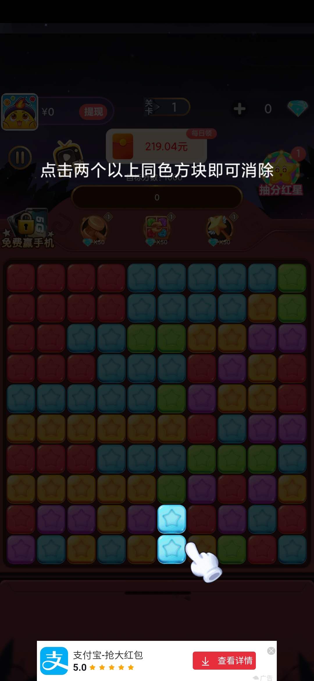 我们一般来说,只要通过在游戏里面的消除游戏,合并并且消除星星,来不断进行通关,就可以领到很多的红包了哦。红包都是直接存入到自己的余额之中,来进行提现。